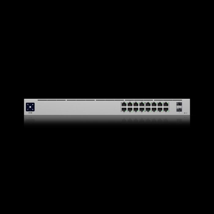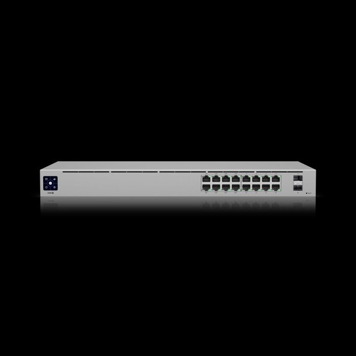 Сенсорный дисплей коммутатора Unifi Switch 16 POE gen2 наглядно демонстрирует главную информацию о работе свитча. Производительность второй линейки коммутаторов gen2 существенно превосходит первое поколение.
