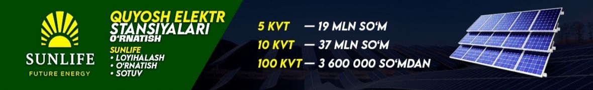 SUNLIFE – Quyoshdan energiya, sizga tejash!