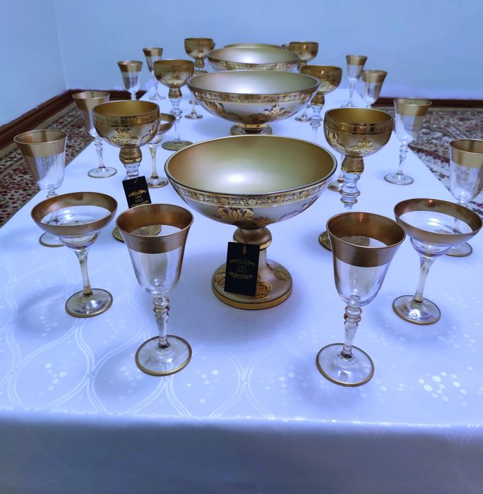 "Eksklyuziv: 12 kishilik tilla naqshli Bagema vazalar to'plami"