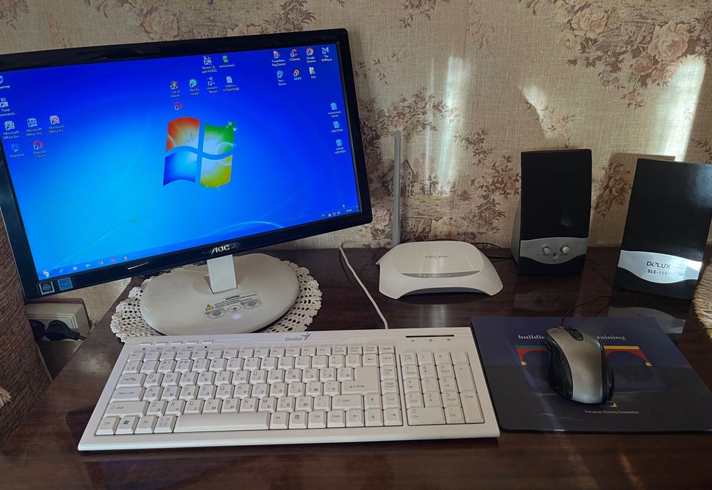 Продается офисный компьютер с роутером, колонками, периферией
