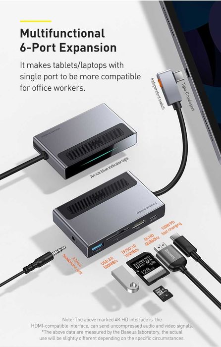 Baseus 6 in 1 Hub for iPad Pro & MacBook Pro PD-100W / 4K-30Hz Upgrade