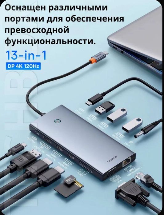 Baseus Hub 13 в 1 Hdmi 8k 30Hz 4k 60Hz RJ45 Usb 3.1