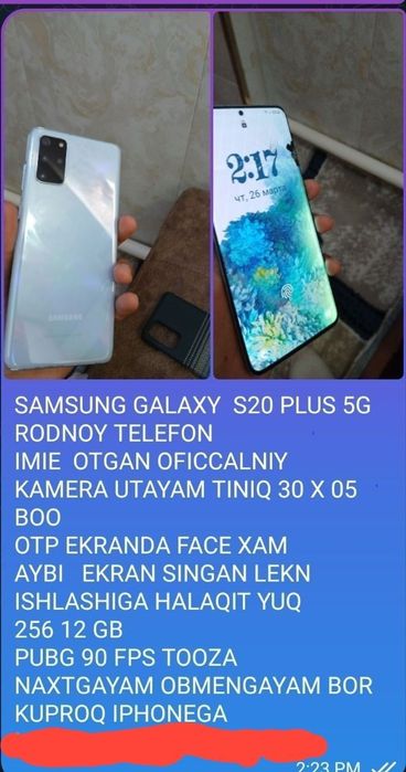 samsung s20 5g — Продажа электроники в Узбекистане ✔️ Большой выбор новых и б/у смартфонов, наушников и аксессуаров по выгодным ценам ☝ Проверенные предложения на OLX.uz