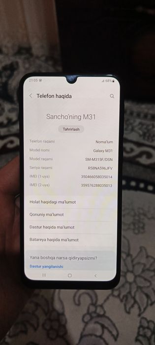 Samsung M31 hamma joyi radnoy imekaladan oʻtgan cheholni izi bor sal
