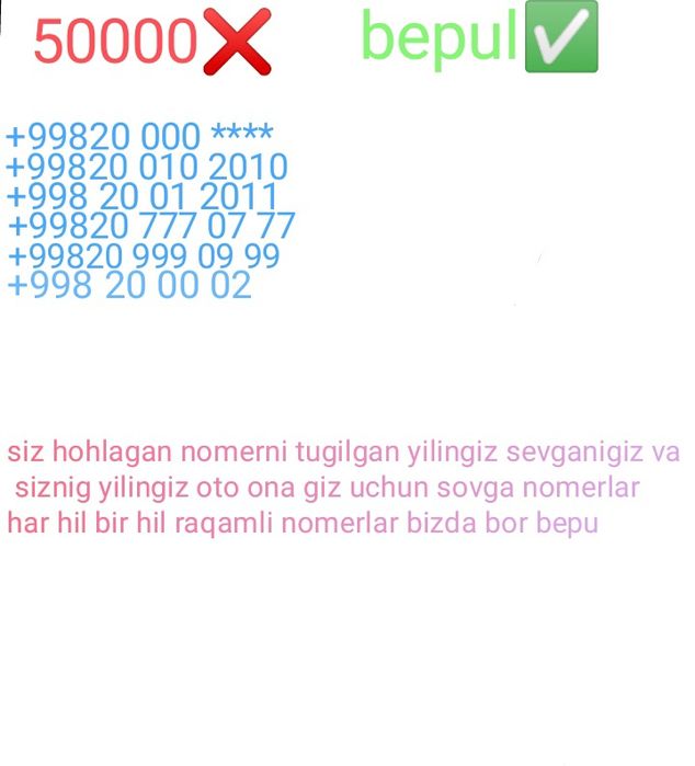 Продажа сим карт, VIP номеров Карасу на OLX.uz. Здесь можно купить SIM карты и красивые номера для мобильных телефонов по самым выгодным ценам. OLX.uz Карасу - покупайте крутые номера и стартовые пакеты для телефона у нас!
