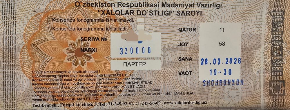 На OLX.uz можно найти различные виды билетов на концерты: