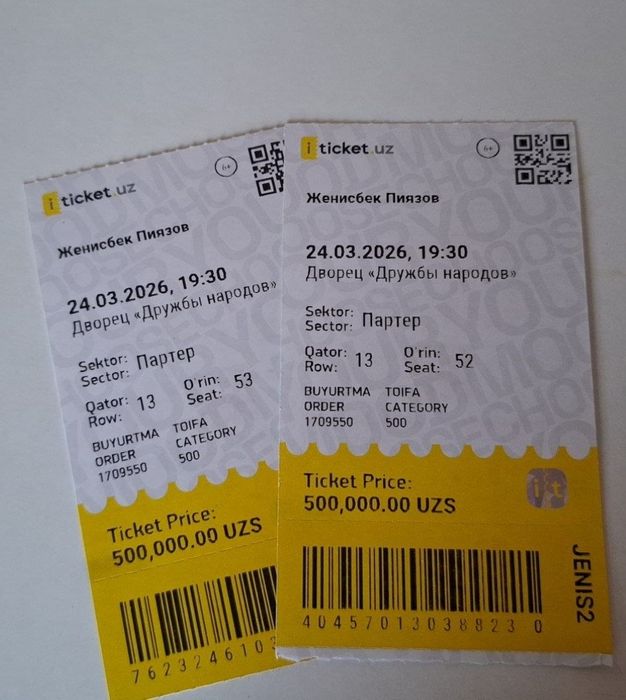 Продажа билетов на сервисе объявлений OLX.uz Узбекистан. Множество предложений на ОЛХ позволит купить билеты по выгодной цене на любое мероприятие!