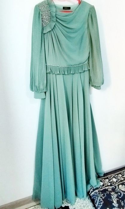Turkiya Oqshom libosi. Och feruza rangida.