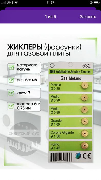Жиклеры(форсунки) для газ плиты под природный газ (метан) г. Самарканд