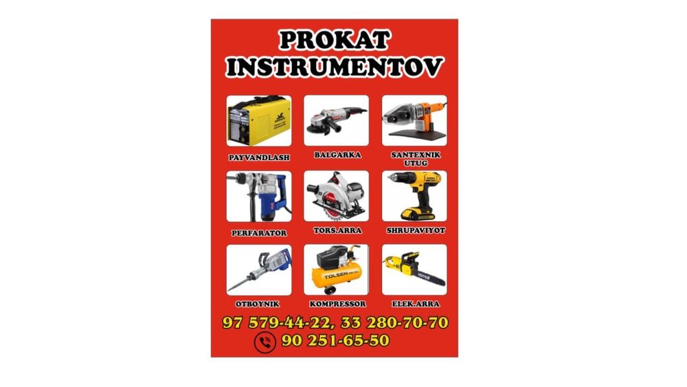 instrument arenda bo'lim: Asboblar va uskunalar ijaraga olish