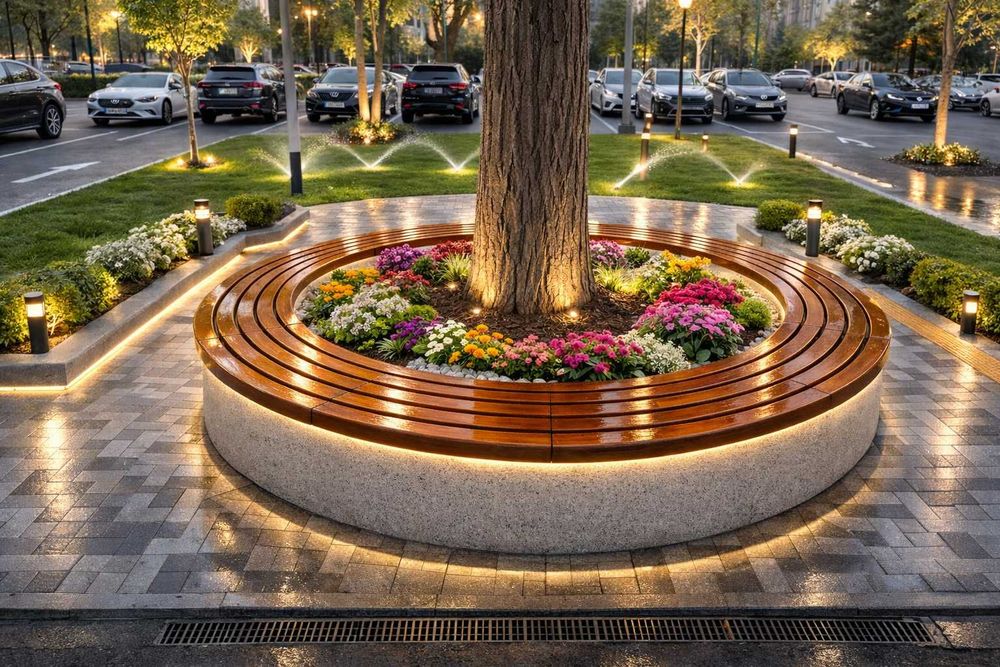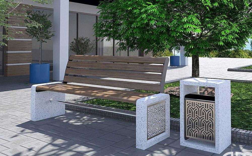 Бетонные cкамейки и урны для парков и садов