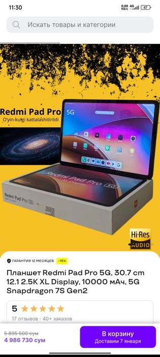 4 800 000 so’mKelishilgan