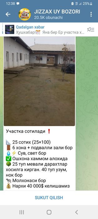 uchastka — Zafarobodda ko‘chmas mulk savdosi va ijarasi ➤ Eng yaxshi narxlarda turar joy va tijorat ko‘chmas mulki ✔️ OLX.uz’da ko‘plab arzon e’lonlar orasidan tanlang!