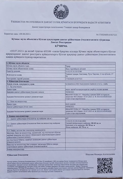 Toshkent, Bektemir tumani - 01/03/2026