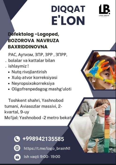 логопед работа bo'lim: Ta'lim