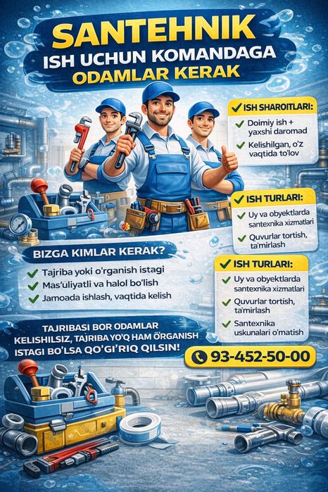 toshkent santexnika ish kerak bo'lim: Ish