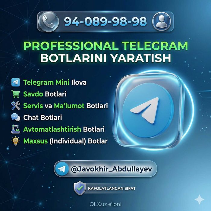 Veb-sayt yaratish / avtomatlashtirish Namangan ⭐ OLX.uz O‘zbekiston e‘lonlar taxtasida tez va oson xizmatni topish yoki ko‘rsatish mumkin ✔️ Eng yaxshi xizmatni OLX.uzda toping!