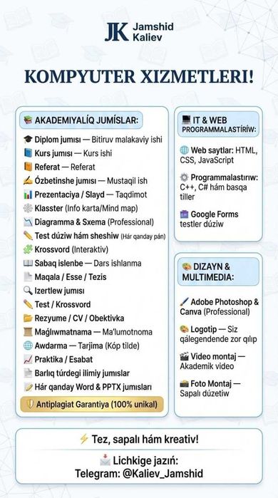 Biz yangi e’lonlar kiritilish bilan sizga ma’lum qilamiz