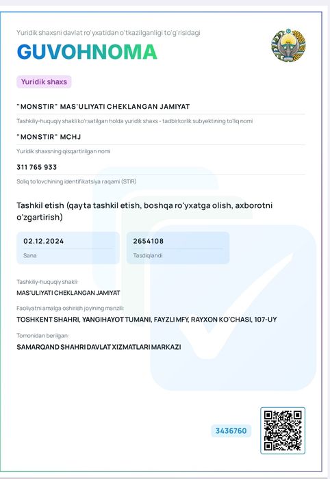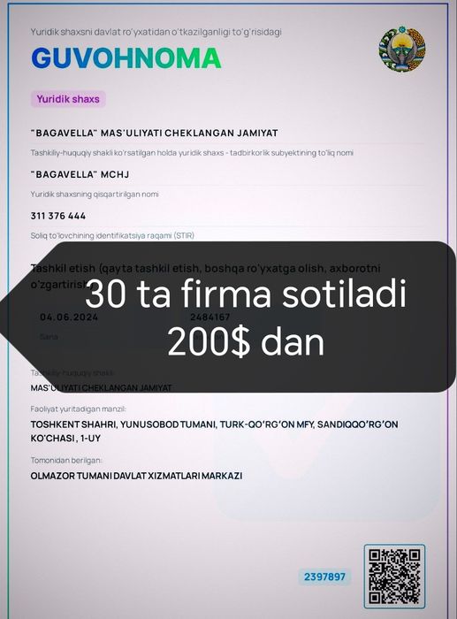 фирма мчж сотилади bo'lim: Xizmatlar