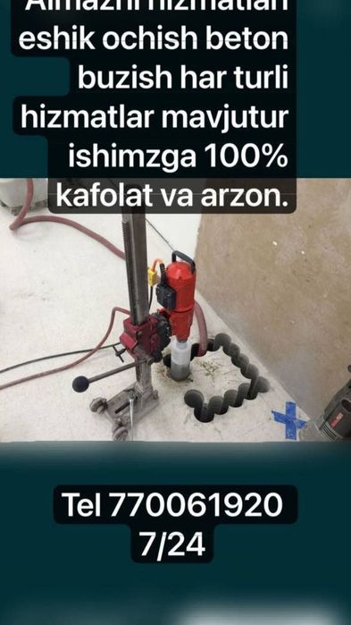 Olmosli burg'ulash/ beton kesish Gulobod ⭐ OLX.uz O‘zbekiston e‘lonlar taxtasida tez va oson xizmatni topish yoki ko‘rsatish mumkin ✔️ Eng yaxshi xizmatni OLX.uzda toping!