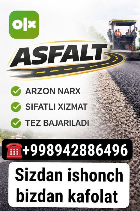 Asfalt Go'zalkent ⭐ OLX.uz O‘zbekiston e‘lonlar taxtasida tez va oson xizmatni topish yoki ko‘rsatish mumkin ✔️ Eng yaxshi xizmatni OLX.uzda toping!