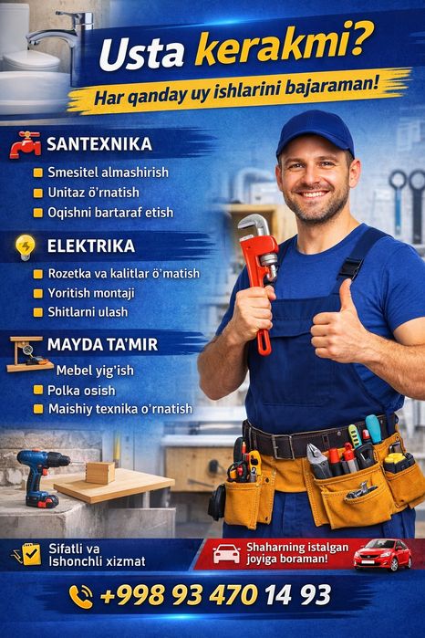 ustalar bo'lim: Qurilish / ta'mirlash / usta