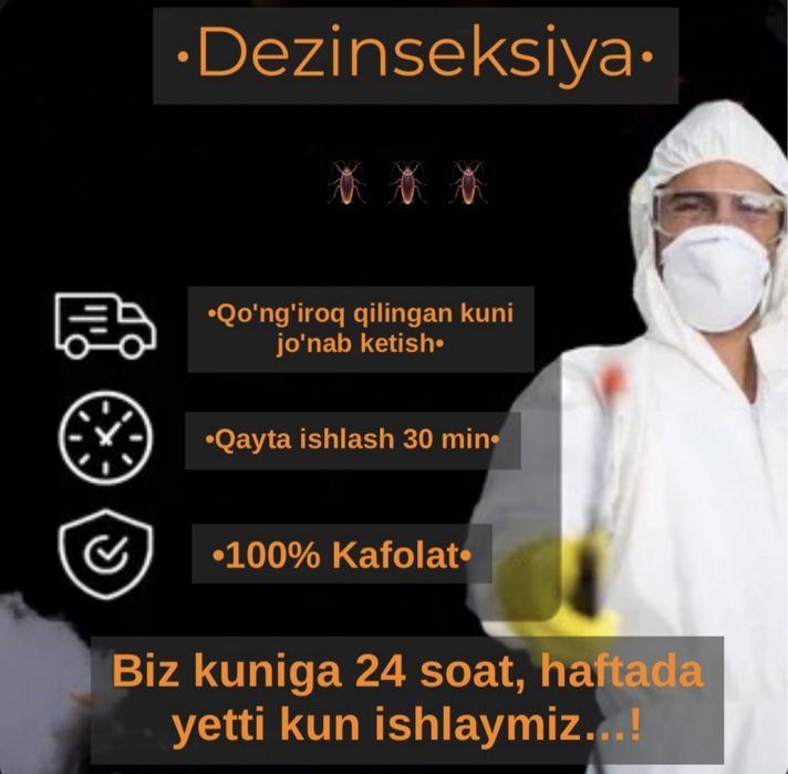 дезинфекция дезинсекция дератизация Navoiy viloyati ⭐ OLX.uz O‘zbekiston e‘lonlar taxtasida tez va oson xizmatni topish yoki ko‘rsatish mumkin ✔️ Eng yaxshi xizmatni OLX.uzda toping!