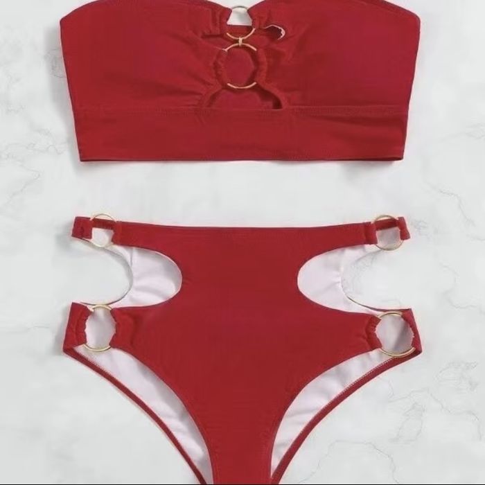 Слитные купальники с вырезами, бикини с высокой талией, бандо, монокини. Актуальны анималистичные принты и неоновые цвета.
