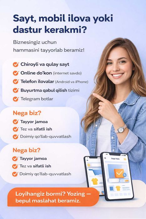 Услуги по созданию и автоматизации бизнеса Ургенч ⭐ Разработка сайтов визиток, интернет магазинов, корпоративных порталов и другое на OLX.uz!