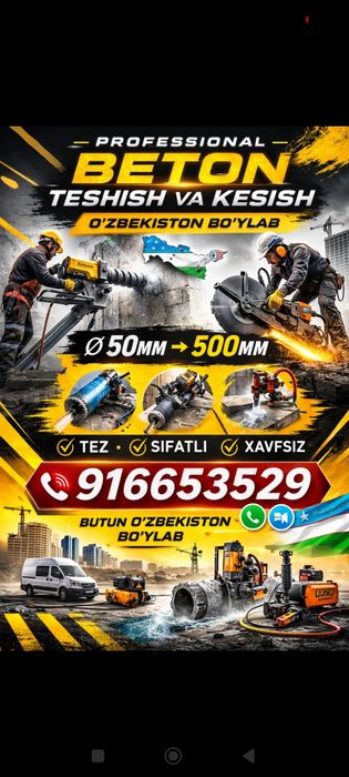 Алмазное бурение и алмазная резка бетона Ферганская область ☝ Заказать услугу по алмазному бурению или резке у компании или мастера можно на OLX.uz!