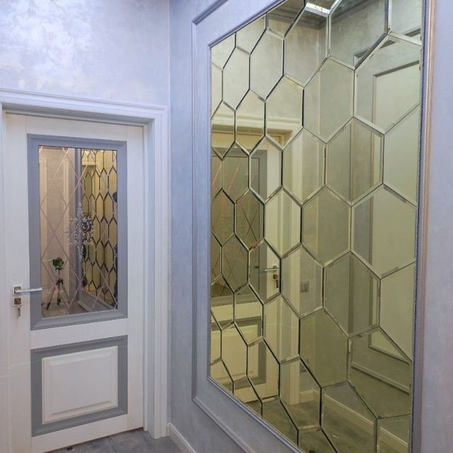 Стекло резка и устанофка .Витрина Зеркала Ромбик Oyna кесиш