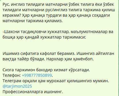 Услуги переводчиков и операторов по набору текста Кибрай на OLX.uz. Самые выгодные предложения ждут тебя на OLX.uz Кибрай!